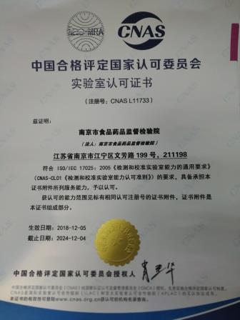 市食药检院于12月17日正式获得由中国合格评定国家认可委员会(CNAS)颁发的实验室认可证书,证书号码为:CNAS L11733。